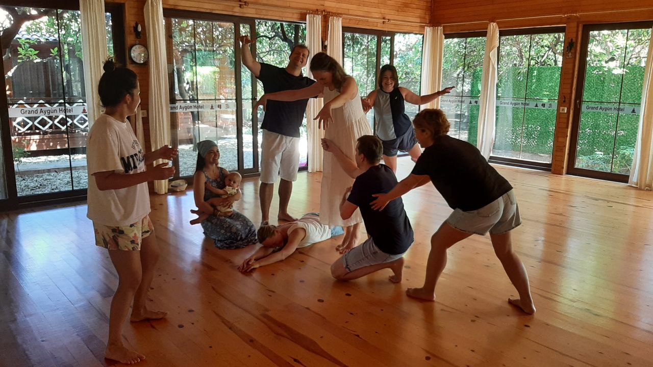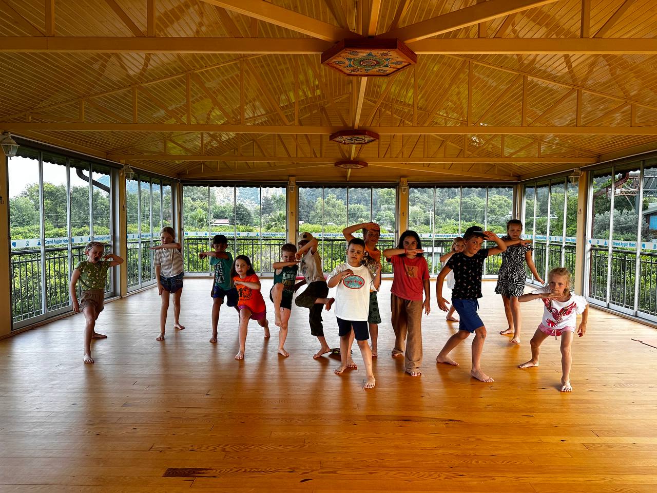 Ужин: Шведский стол — что-то мясное (котлеты, курица, тефтельки или рыба), овощи, зелень, овощные блюда: перцы, баклажаны, кабачки, гарниры: рис, булгар, фасоль, нут, суп, хлеб, какой-то фрукт по сезону, что-то сладкое, чай