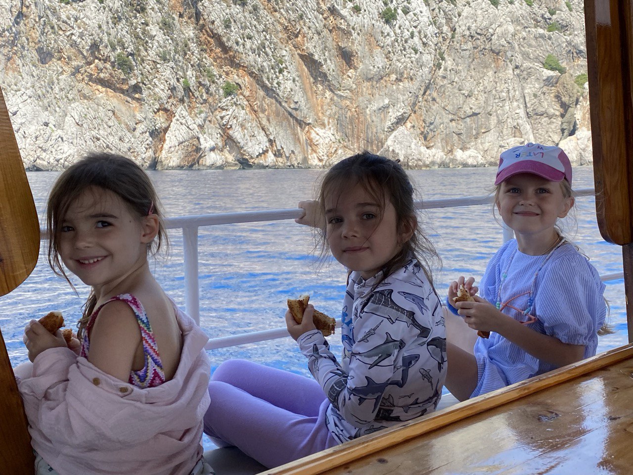 Завтрак: Шведский стол — каша, хлеб, 2 вида сыра, масло, 2 вида маслин, зелень разная, огурцы, помидоры, чай, 3 вида варенья+ мед, яйца, что-то из теста (пышки, трубочки, гезлеме), молоко и сухие завтраки/шоколадные шарики для детей, творог, изюм, перец сладкий