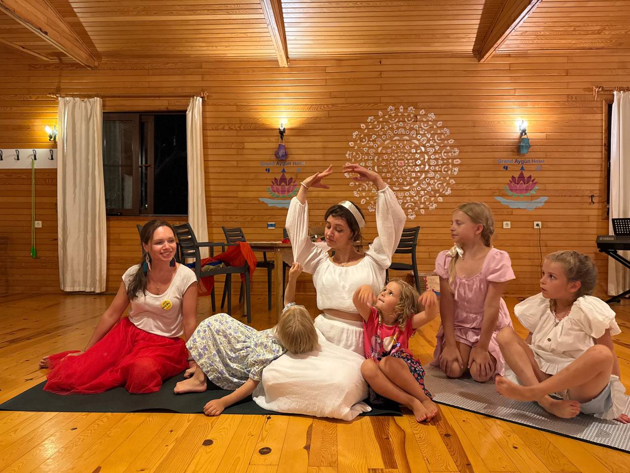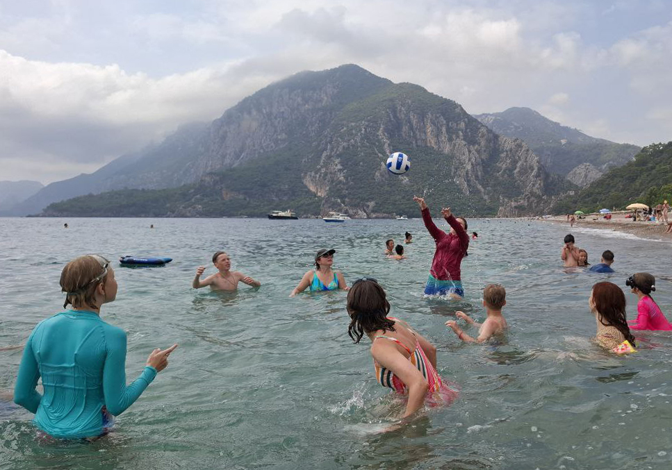 Ужин: Шведский стол — что-то мясное (котлеты, курица, тефтельки или рыба), овощи, зелень, овощные блюда: перцы, баклажаны, кабачки, гарниры: рис, булгар, фасоль, нут, суп, хлеб, какой-то фрукт по сезону, что-то сладкое, чай