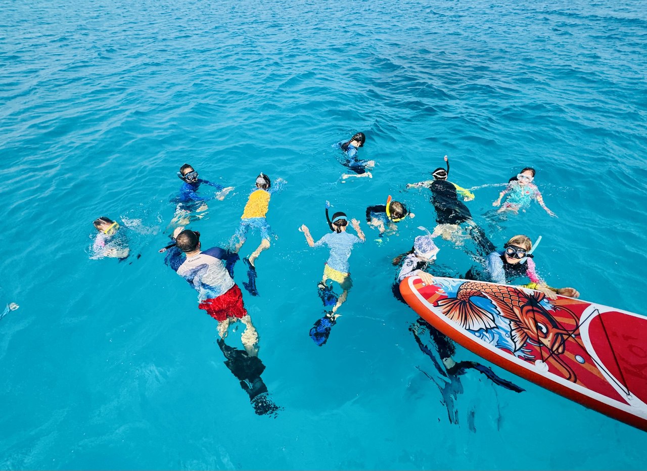 С этого острова мы ездим на экскурсии к самой безопасной китовой акуле (30 минут на лодке), к скатам мантам, акулам нянькам, на затонувший корабль и в бухту к дельфинам.